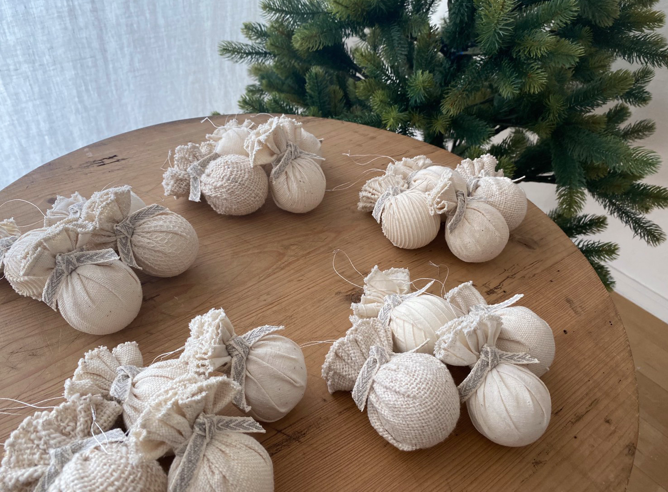 ひとつひとつ種類の違う布を使用してあり、それぞれ独特な風合いがとても素敵なオーナメントです。